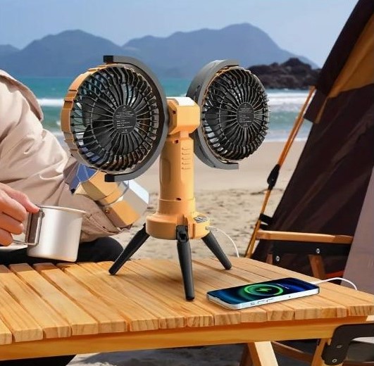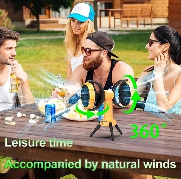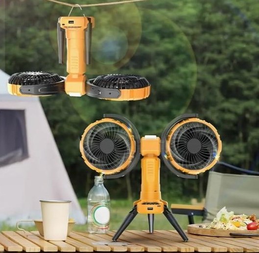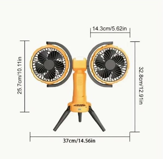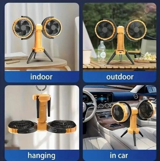 Потужний і універсальний двоголовий вентилятор — ідеальне рішення для охолодження в літню спеку на природі, у наметі, під час пікніку чи вдома. Оснащений двома незалежно обертовими головами з широким кутом обдуву, він забезпечує максимальний комфорт навіть у найспекотніші дні.
