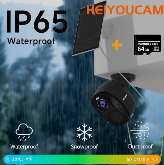 Пристрій водонепроникний (IP66), підходить для використання у дворі, гаражі чи на дачі. Запис може зберігатися у хмарному сховищі або на карті пам’яті TF (у комплекті 64 ГБ).